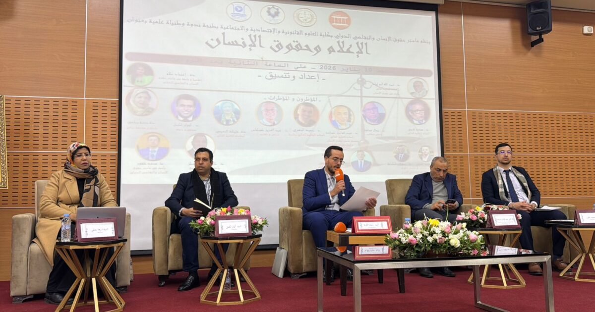 دعا المشاركون في الندوة الوطنية حول “الإعلام وحقوق الإنسان” التي نظمها ماستر حقوق الإنسان والتقاضي الدولي بكلية العلوم القانونية والاقتصادية والاجتماعية التابعة لجامعة عبد المالك السعدي السبت 10 يناير 2026 ببيت الصحافة، الى ” أنسنة ” وسائل الإعلام والاتصال، والالتزام بمبادئ حقوق الإنسان، باعتبار ذلك من بين الركائز الأساسية لبناء المجتمعات،.